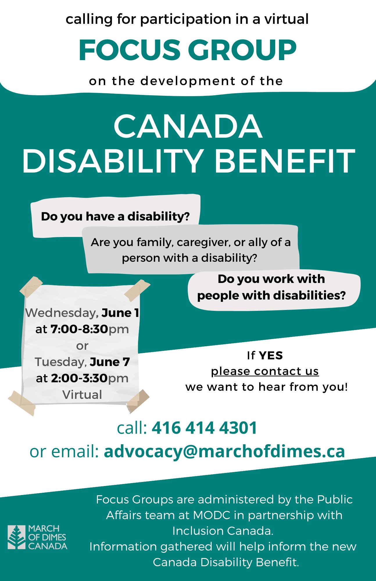 Epic Opportunities On Twitter Have Your Voice Heard Regarding The Development Of The Canada Disability Benefit Call 416 414 4301 Or Email Advocacy Marchofdimes Ca For More Information About Attending The Event Disability Advocacy